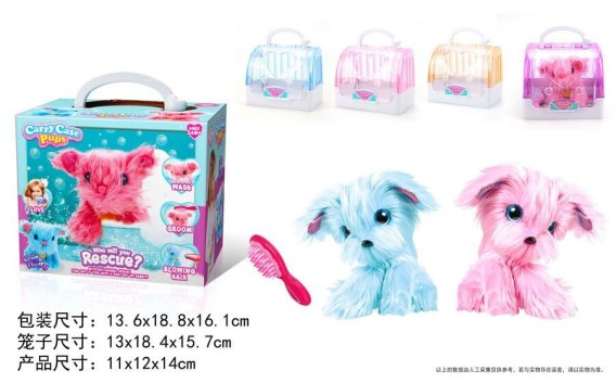 PIESEK DO CZESANIA W KOSZYCZKU W zestawie: piesek transporter dla pieska szczotka do czesania pieska Pozostałe informacje: wym. opakowania: 18,8 x 13,6 x 16,1 cm wiek: 3+