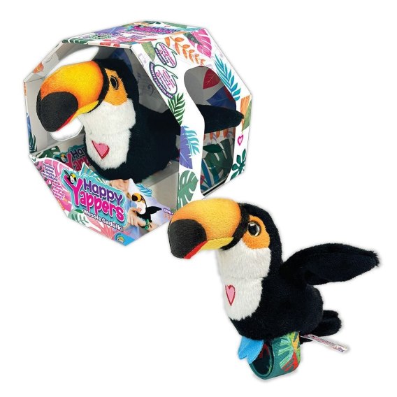 Happy Yappers /IT-9591/ Wesołe Gadułki - Tukan Interaktywny pluszowy tukan z serii Happy Yappers. Zabawka reaguje na dźwięki i ruch - porusza się, wydaje odgłosy i "gada", zapewniając dzieciom dużo radości i śmiechu. Wykonana z miękkiego, bezpiecznego materiału. Idealna do zabawy i przytulania. Happy Yappers - Wesołe Gadułki Interaktywne pluszowe ptaki, które śpiewają, mówią, potrząsają skrzydłami i rozmawiają między sobą. Zabawki ładują się przez USB - bez wymiany baterii. Dostępne modele (sprzedawane osobno): * Tukan * Flaming * Wilga * Czerwona papuga * Kakadu * Niebieska papuga Specyfikacja (dot. wszystkich modeli): * Wysokość: ok. 20cm * Zasilanie: wbudowana bateria, ładowanie przez USB (kabel w zestawie) * Odtwarzanie dźwięku: "gadające" interakcje, odgłosy ptaków * Funkcjonalności: flapping wings, samoczynne rozmowy między ptakami, możliwość powtarzania słów * Materiał: miękki, bezpieczny plusz * Rekomendowany wiek: 3+ * Wysokość zabawki: ok. 20 cm * Wymiary opakowania: ok. 20 x 12 x 10 cm * Waga: ok. 0,3 kg * Zasilanie: Zabawki ładują się przez USB - bez wymiany baterii. * Rekomendowany wiek: 3+ Zabawka posiada funkcję automatycznego wyłączenia po czasie bezczynności. Produkt oficjalny, oryginalny.
