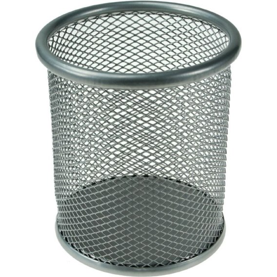 Pojemnik na długopisy Titanum metalowy wys. 10 cm, śr. 9 cm srebrny (M-501S)