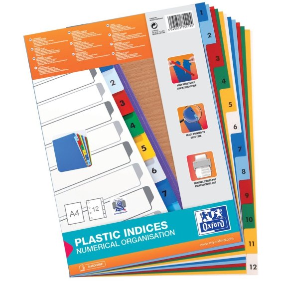 Przekładka numeryczna A4 mix 12k 1-12 [mm:] 225x300 Oxford (100204769)