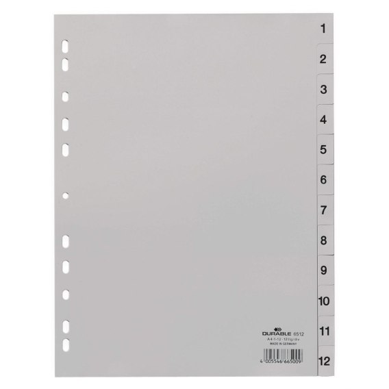 Przekładka numeryczna szare PP 1-12 A4 szara Durable (651210)