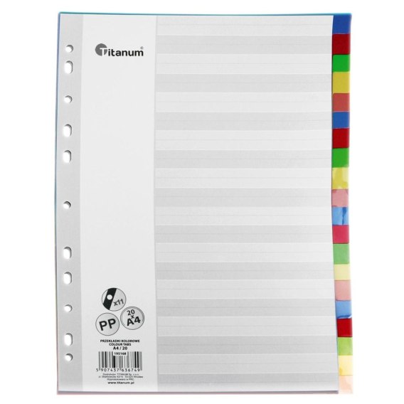 Przekładki do segregatora PP Titanum A4 20 kartek indeksy kolorowe (IK20)