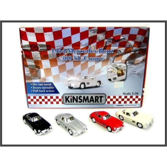 - model samochodu Mercedes Benz 300ML Coupe 1954 - w skali 1:36 - z napędem - z otwieranymi drzwiami - w czterech kolorach - wymiar 14 cm skala: 1:36 140 mm