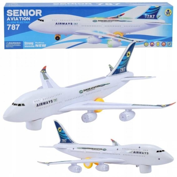 Duży samolot pasażerski z efektami świetlnymi i dźwiękowymi