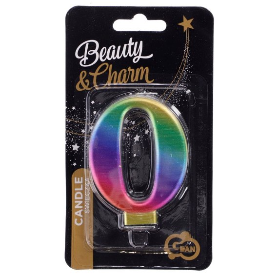 Świeczka urodzinowa cyferka 0, tęczowa 8 cm Godan (PF-SCG0)