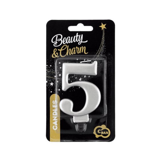 Świeczka urodzinowa cyferka 5, metalik srebrna 8 cm Godan (PF-SCS5)
