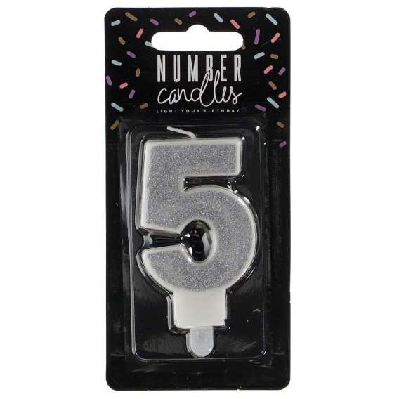 Świeczka urodzinowa cyferka 5 srebrny 7 cm 7cm Partydeco (SCU3-5-0188)