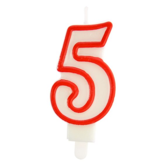 Świeczka urodzinowa cyferka nr 5 biała czerwona obwódka Arpex (DS0132CZE-5-9906)