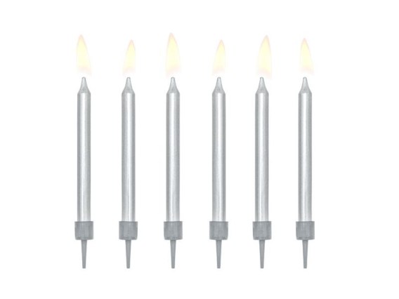 Świeczka urodzinowa gładkie w kolorze srebrnym metalizowanym 6cm/6szt. Partydeco (SCP-10-018ME)