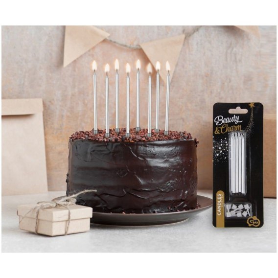 Świeczka urodzinowa srebrne z podstawkami 10 cm/ 8 sztuk Godan (PF-SUSR)