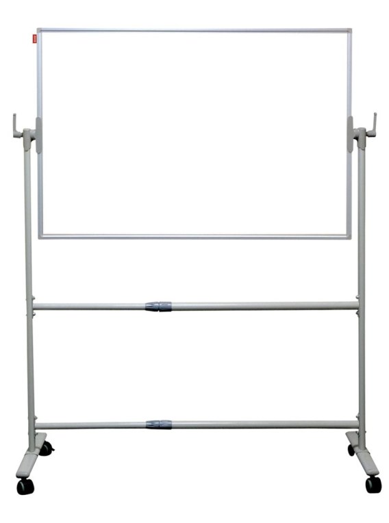 Tablica obrotowo-jezdna MemoBe Telescopic.Dwustronna obrotowa powierzchnia robocza, która wykazuje właściwości suchościeralne, dzięki czemu można pisać po jej powierzchni dedykowanymi markerami suchościeralnymi lub kredowymi oraz właściwości magnetyczne, które pozwalają na zawieszanie grafik i kartek za pomocą magnesów. Powierzchnia tablicy wykonana jest z wysokiej jakości stali lakierowanej w kolorze białym. Wewnątrz tablicy pomiędzy arkuszami stali zastosowano pilśnię, która pełni rolę usztywnienia. Rama Prestige wykonana jest z anodowanego aluminium w kolorze popielatym o szer. 20 mm i grub. 18 mm. Narożniki ramy są również w kolorze popielatym. Za pomocą plastikowej rączki blokujemy lub zwalniamy blokadę, dzięki czemu możemy obrócić tablicę o 180 stopni. Regulowany kąt pochylenia tablicy. Stalowy stelaż w kolorze popielatym z dwiema teleskopowymi poprzeczkami do regulacji rozstawu pozwala na wymienny montaż różnych wymiarów lub rodzajów tablic. Stabilność konstrukcji zapewnia system blokujący na 4 kółkach. W zestawie dołączony jest komplet montażowy, instrukcja montażu oraz 2 półki aluminiowe do złożenia z tablicą. Tablica obrotowo-jezdna polecana jest zarówno do biur i zakładów pracy, gdzie doskonale sprawdza się podczas spotkań, konferencji czy szkoleń i stanowi znakomite wsparcie dla liderów spotkań biznesowych, jak i rekomendowana jest do szkół, gdzie pełni rolę nowoczesnego środka dydaktycznego, dzięki któremu w jasny i czytelny sposób prezentowane są komunikaty wizualne podczas lekcji i wykładów. Dodatkowym atutem tablicy jest jej mobilność, dzięki czemu tablicę w szybki i łatwy sposób można przemieszczać między klasami lub innymi pomieszczeniami. Tablicę cechuje niezwykła trwałość, która zapewnia bezpieczeństwo podczas jej montażu i użytkowania. Dzięki wysokiej jakości powierzchni, prezentowane na tablicy treści są dobrze widoczne i czytelne. Okres gwarancji na powierzchnię wynosi 10 lat.Czyszczenie tablicy - za pomocą miękkiej gąbki lub ściereczki. Do pisania należy używać wyłącznie markerów przeznaczonych do tablic. Zaleca się systematycznie czyszczenie i konserwację powierzchni za pomocą dedykowanych płynów do tablic.