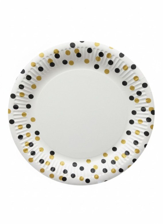 Talerz jednorazowy Confetti gold-Black papier śr. 230mm 8 szt Paw (PPL8000509)