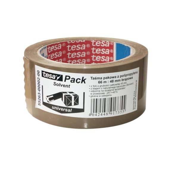 Taśma pakowa Solvent 48x66 [mm x m] brązowa Tesa (55263-00002-00)