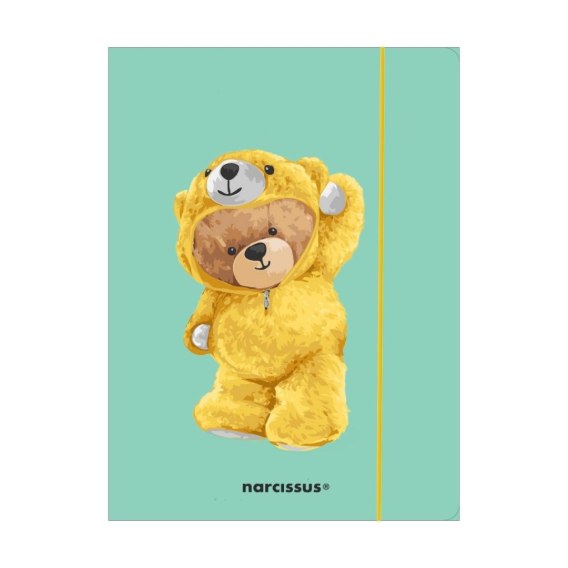 Teczka kartonowa na gumkę Teddies& Miś w dresiku A4 srebrny 270g Narcissus
