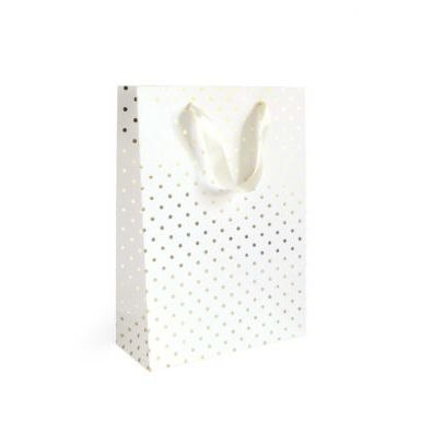 Torba prezentowa biała w złote kropki, L [mm:] 330x100x 240 Argo (257026)