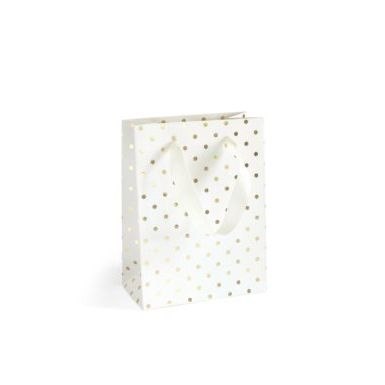 Torba prezentowa biała w złote kropki, S [mm:] 200x80x 150 Argo (257024)