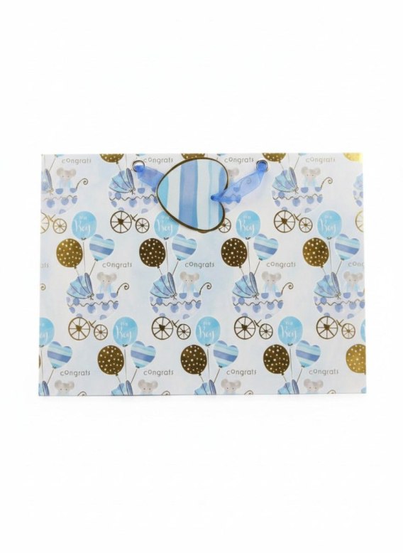 Torba prezentowa wózeczek z balonami niebieski, XL, 5szt. [mm:] 310x420x 120 Argo (257056)