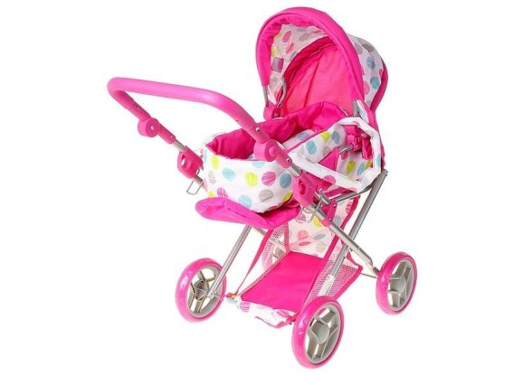 Wózek głęboki dla lalek, profilowana rączka, wyjmowane nosidełko, z koszem, funkcja spacerówki Adar (565746)