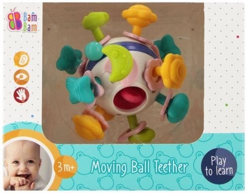 KULA SENSORYCZNA BAM BAM pozwala na doskonalenie umiejętności manualnych i motoryki małego dziecka w pełnym zakresie. Łatwość jej utrzymania w małej dłoni, chwycenia, potrząsania, zginania doskonale mobilizuje dziecko do manewrowania i manipulacji paluszkami, zapewniając mu przy tym długą zabawę. Intensywne kolory wypustek grzechotki stymulują jego percepcję wzrokową, a zróżnicowana tekstura, zmysł dotyku. Dodatkowe kuleczki gumowe o zróżnicowanej fakturze i kształcie , wydają dyskretne dźwięki szeleszczenia podczas potrząsania stymulując słuch dziecka. Zabawka wykonana z najwyższej jakości plastiku oraz gumy, bez ftalanów, zgodna z EN-71 i CE zapewnia bezpieczną zabawę. Wymiary/waga/baterie: wymiary produktu (dł. x wys. x gł.)[cm]: 10x10x10, wymiary opakowania (dł. x wys. x gł.)[cm]: 18x14x14, waga produktu bez opakowania [kg]: 0,15 kg, waga produktu w opakowaniu [kg]: 0,24 kg, nie wymaga zasilania bateriami. Zabawka przeznaczona dla dzieci w wieku: 3m+. Pakowana w kartonik z okienkiem. W kartonie zbiorczym po 72 szt.