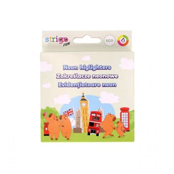 Zakreślacz KAPIBARA EKO NEON 4 sztuki wkład mix Strigo (SSC504)