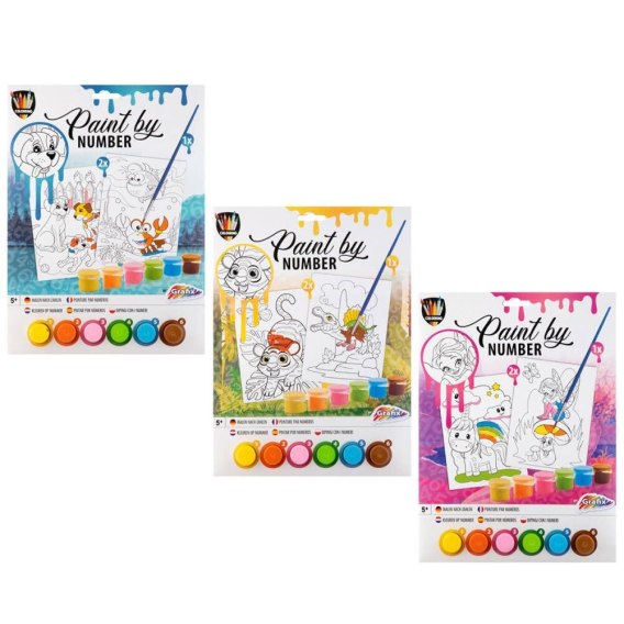 Zestaw kreatywny dla dzieci Malowanie po numerkach 2 x A4, 3 szt. - 6 farb i pędzelek Icom (150057)