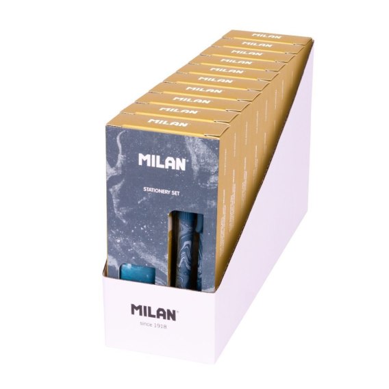 Zestaw piśmienniczy Niebieski P1 Lava długopis + ołówek + temperówka Milan (6355LVBA)