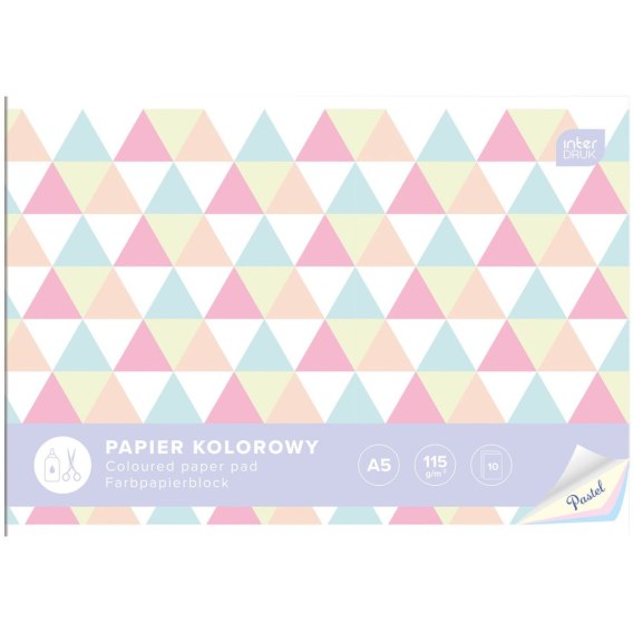 Zeszyt papierów kolorowych PASTEL A5 115g 10k Interdruk