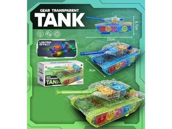 Czołg przezroczysty, kolorowe zębatki w środku, światło i dźwięk Grafix (7175774)