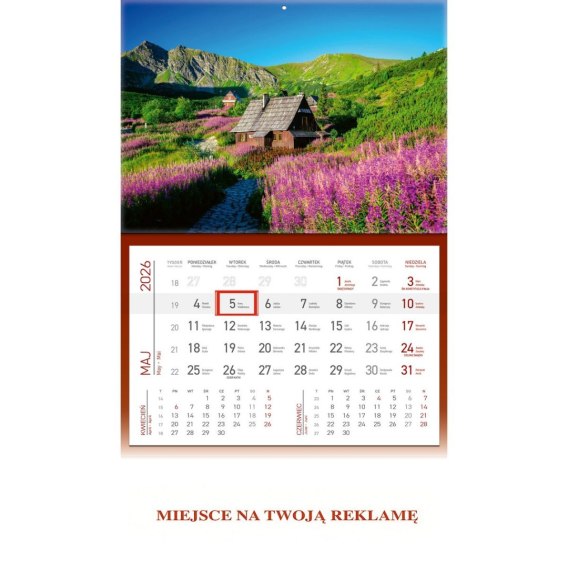 Kalendarz ścienny HALA GĄSIENICOWA JEDNODZIELNY plecki SZARE 512mm x 295mm Wydawnictwo Wokół Nas (KS 056)