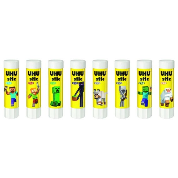 Klasyczny klej biurowo-szkolny w sztyfcie UHU w edycji limitowanej Minecraft. Opakowanie 8,2 g z odkręcaną unikalną nakrętką, która zapobiega wysychaniu. Znany produkt "Made in Germany”. Formuła kleju składa się w 98% z naturalnych składników (w tym wody). Nie zawiera rozpuszczalników i kwasów. Klei mocno, szybko i trwale. Czas schnięcia/utwardzania to około 45 sekund. Gładki w aplikacji, bardzo wydajny i zmywalny w zimnej wodzie. Dodatkowo pojemnik UHU stic wykonany jest w 50% z plastiku z odzysku. Odpowiedni do klejenia papieru, kartonu, fotografii, styropianu, etykiet, tkanin, itp. Idealny do użytku w domu, biurze, szkole i przedszkolu. Testowany i certyfikowany przez TÜV Süd (wydajność klejenia, łatwość użycia i ogólna jakość produktu). Przechowywać w suchym, chłodnym i zabezpieczonym przed mrozem miejscu. Klejone materiały muszą być czyste, suche, odtłuszczone i odkurzone. Jedna z klejonych powierzchni musi być chłonna. Podczas nakładania lekko docisnąć klej na klejone materiały.