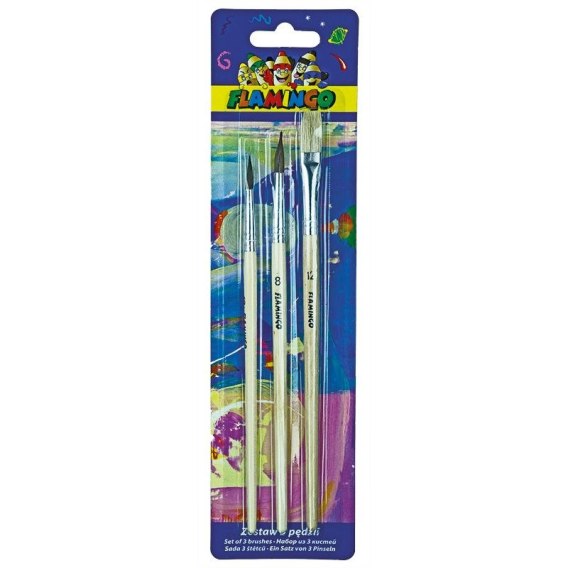 Pędzel drewniany uchyt zestaw 3 szt. nr mix Flamingo (PS-01)